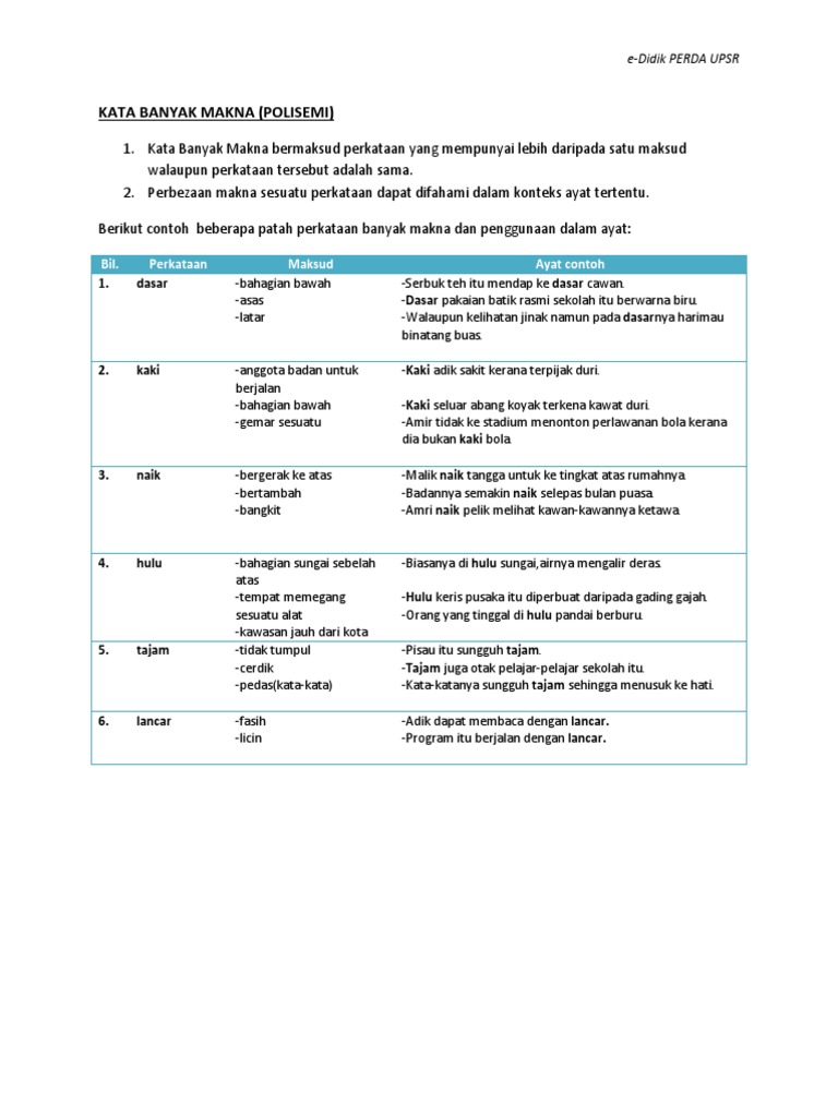 Bahasa Melayu Latihan Kata Banyak Makna Sumber Pengajaran